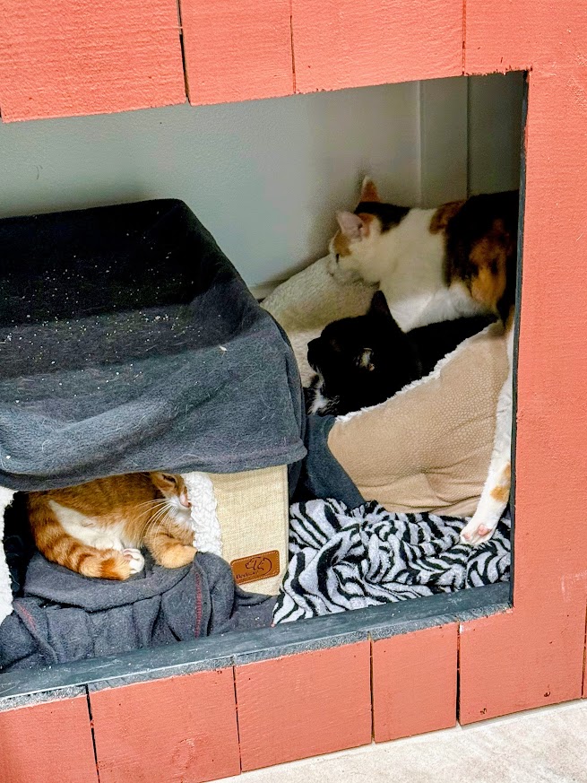 The “catification” of the space is an ongoing process, and we are already so pleased with how it is coming together. Watching the cats explore, relax, and claim their favorite spots has been incredibly rewarding for our staff and volunteers.